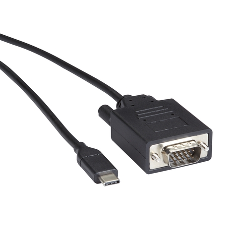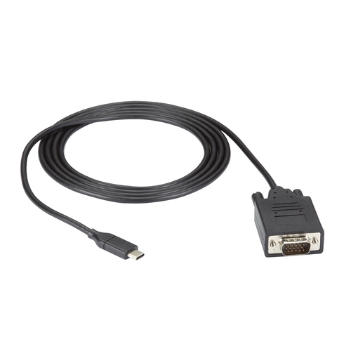 オールインワン アダプタ ケーブルは、ノートパソコン、タブレット、スマートフォンの USB Type-C またはサンダーボルト 3 ポートを VGA ディスプレイに接続
