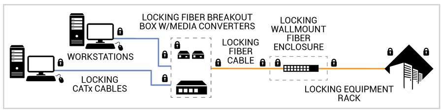エンクロージャやコネクタのロック、テレコムルームのキャビネットのロックにより、光ファイバケーブルや LAN ケーブルの接続点への物理的アクセスを防止し、セキュリティをさらに強化します。