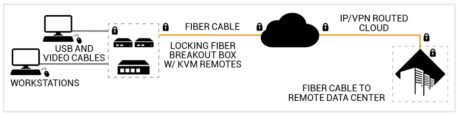 高性能 KVM と光ファイバケーブルの利点を組み合わせ、セキュリティ保護されたデータ設備へのリモートワークステーションアクセスを効果的に管理します。