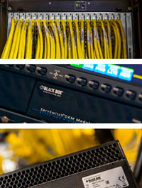 「Black Box なら、必要な製品がほとんど入手できます。設置後、別の機器が必要になった場合も柔軟に対応し、配線もスムーズに完成しました。大改修でしたが、1社にすべてを任せることができたのは楽でした」と、WWE の Veldhuis 氏は言います。 マトリクスに装着した 1台の機器で 8つのモニタに接続する「8 in 1」ソリューションも決め手となり、結果、コンピュータからコンピュータへとプロデューサが移りまわっていた頃より、はるかにスピーディに作業ができるようになりました。作業環境には、ノンリニア編集システム 130台、グラフィック制作用ワークステーション 27台、リニア編集機 3台、コントロールルーム群、吹替ブース 4企を含むオーディオ制作室 5つ、音楽作成室、バーチャルスタジオ、ハードウェア群など多くの機材があり、Black Box にとっても大規模なプロジェクトでした。 3 か月の構築期間で、246台のトランスミッタ・レシーバを搭載した 288ポートのスイッチを導入し WWE の既存システムを刷新したほか、追加の制御室用に 36台のトランスミッタ・レシーバを搭載した 48ポートのスイッチも導入し、将来の必要に応じて、576ポートのスイッチにアップグレードできる設計にしました。