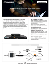 Black Box のセキュア シリアル コンソールサーバがあれば、ネットワーク接続が切断された場合にも、離れた場所のネットワーク機器にアクセス可能です。コンソールサーバは信頼性が高く多機能なソリューションであり、データセンタや支店のネットワーク、サーバ、電源インフラをいつどこからでも容易にアウトオブバンド管理できます。モニタリング、診断、修復の強力な機能が、インフラの接続障害からの回復を可能にし、ネットワークの稼働時間を最大化します。予防アラート機能を備えた直感的なダッシュボードで、インフラの状態をリアルタイムで把握できます。