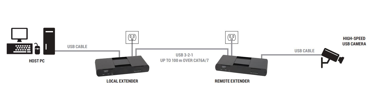 USB エクステンダは、ユーザから離れた場所に置かれた USB 機器にアクセスするための低コストなソリューションです。CATx、光ファイバ、LAN 接続などのメディアを利用して、USB 1.1、USB 2.0、USB 3.0 / 3.1 の信号を最長で 10km 先まで伝送します。
