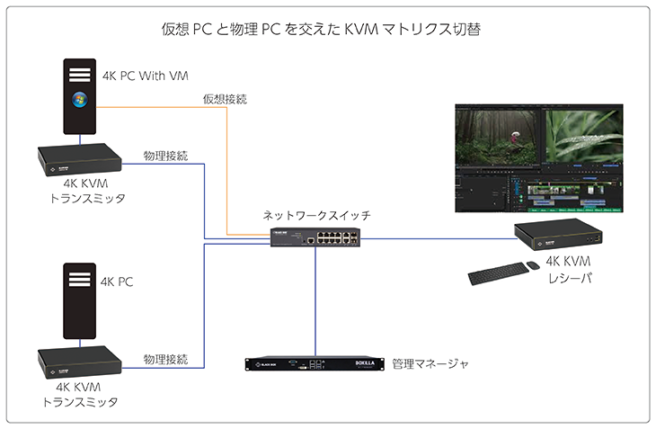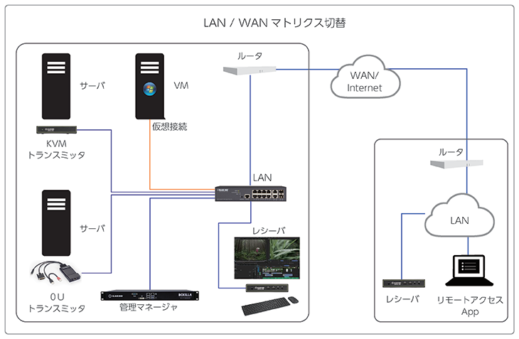 Black Box では、最新の over IP を切り口とした KVM - Emerald、AV - MCX を中心に、さまざまな環境でもイメージが掴みやすいよう汎用性の高い機器展示で分かりやすくご説明します。ご要望に応じて、特殊環境に対するご提案も可能です。