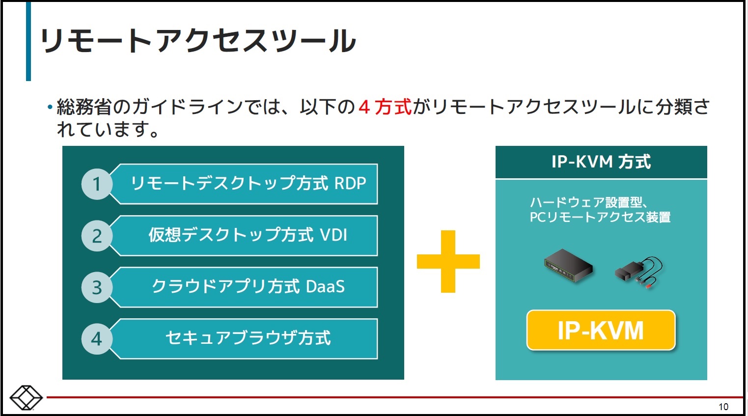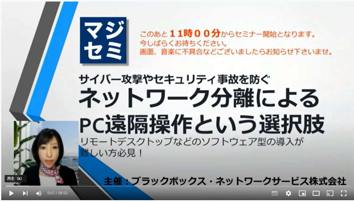ウェビナー動画・プレゼンテーション資料:動画を下記よりすぐに視聴できます!- サイバー攻撃やセキュリティ事故を防ぐ、「ネットワーク分離」によるPC遠隔操作という選択肢 -本セミナーでは、「サイバー攻撃やセキュリティ事故を防ぐネットワーク分離によるPC遠隔操作」を実現する弊社IPKVMソリューションを導入事例を交えて紹介しています。 右のフォームを送信して、本資料のダウンロードに進んでください。➡ 1. 「ネットワーク分離」によるPC遠隔操作という選択肢