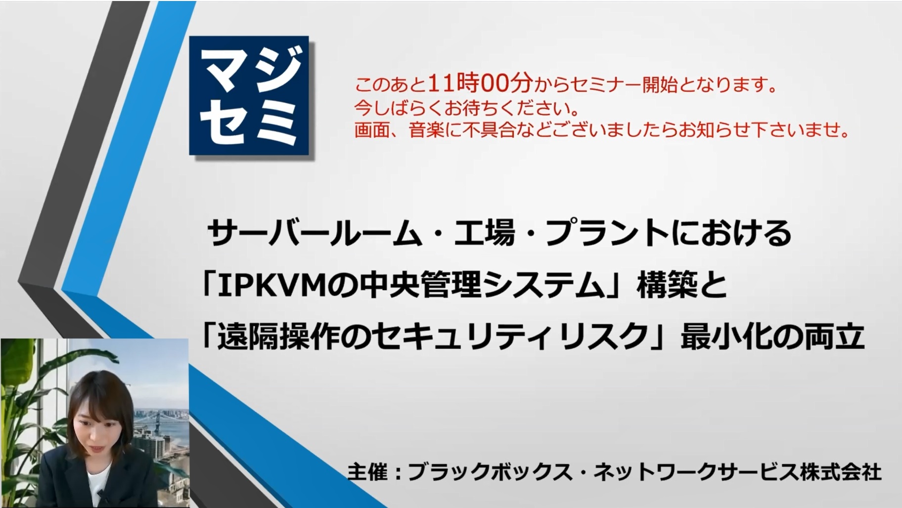 Black Box 日本法人 ホーム > リソース > テクニカルリソース > Black Box ウェビナー > 「IPKVMの中央管理システム」構築と「遠隔操作のセキュリティリスク」最小化の両立(2022/9/1)
