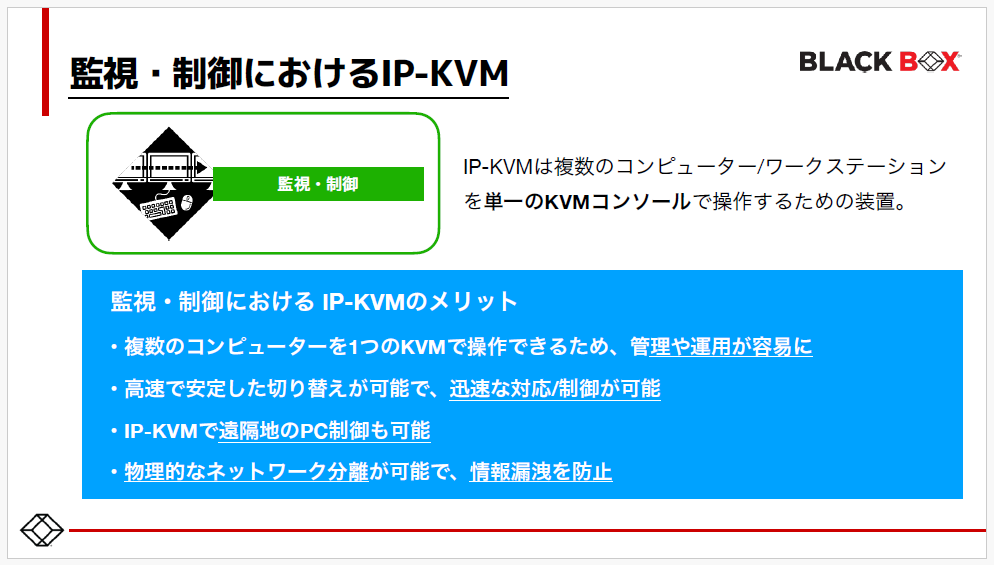 Black Box 日本法人 ホーム > リソース > テクニカルリソース > Black Box ウェビナー > 電力・ガス・水道、空港・鉄道、警察・消防、製造、ビル管理などにおけるコントロールルームの課題とは?(2024/02/19)