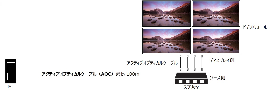 アクティブ オプティカル ケーブル(AOC) は、ビデオやオーディオの品質を維持しながら長距離伝送する、業務用 AV 環境に最適なソリューションです。