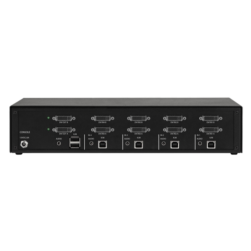 Secure Keyboard, Video, and Mouse operation on up to two or four computers with one or two DVI-I monitors